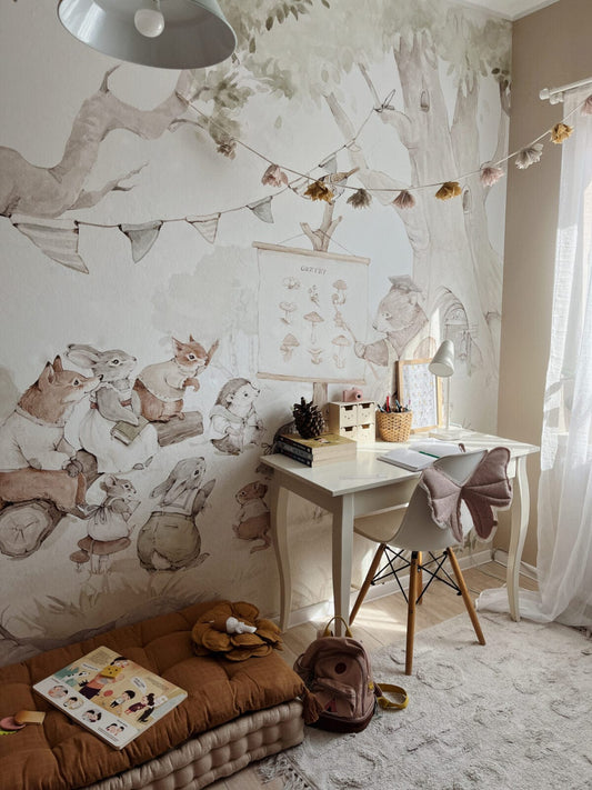 Ταπετσαρία δασικής ζωής μπεζ
