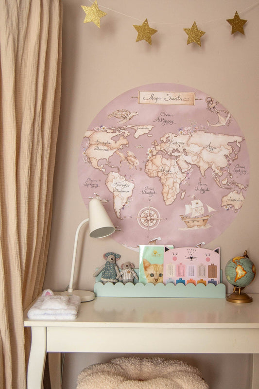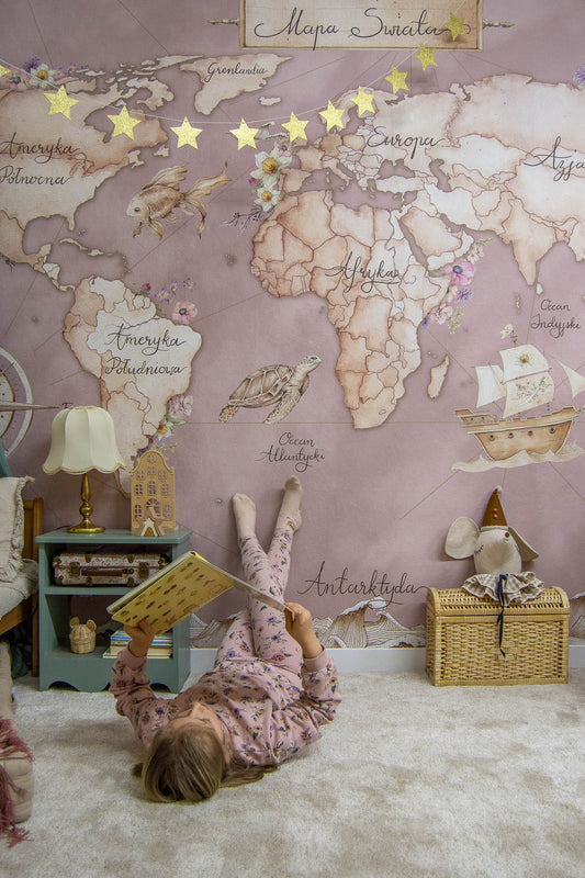 Ταπετσαρία παγκόσμιος χάρτης θάλασσα ροζ