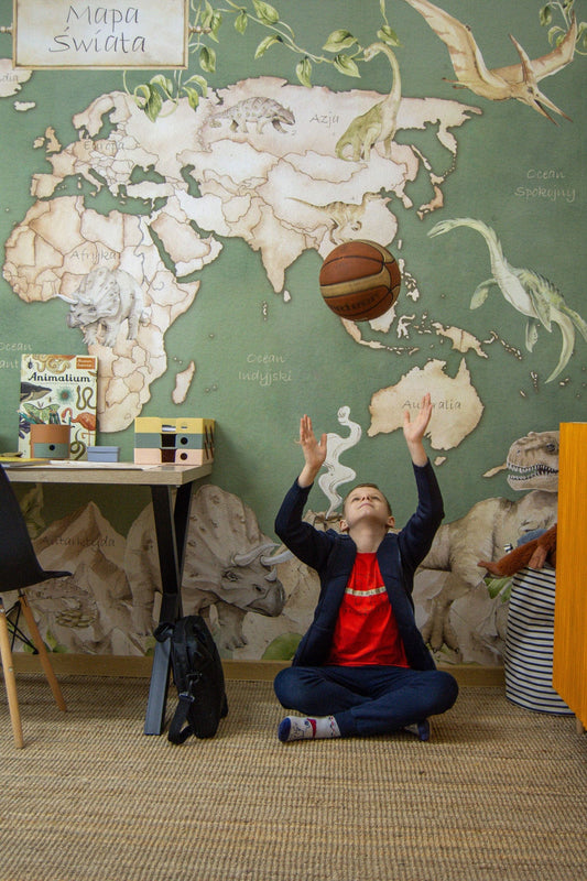 Αυτοκόλλητο παγκόσμιος χάρτης δεινοσαύρων-πράσινος 100x100