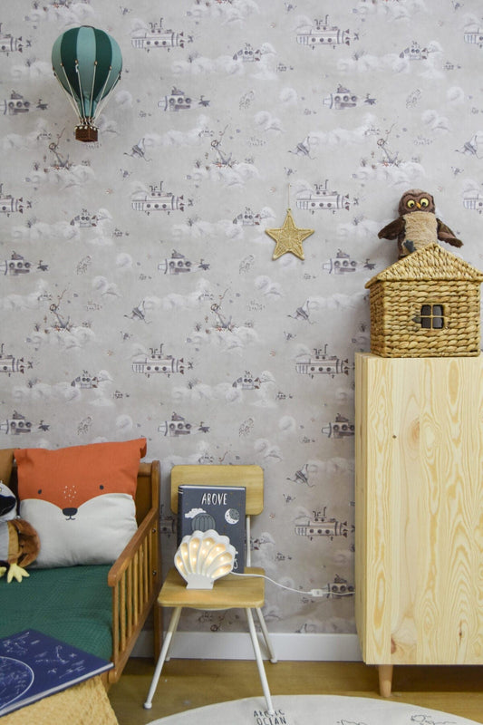 Ταπετσαρία αεροπλάνα και ελικόπτερα- Κρεμ