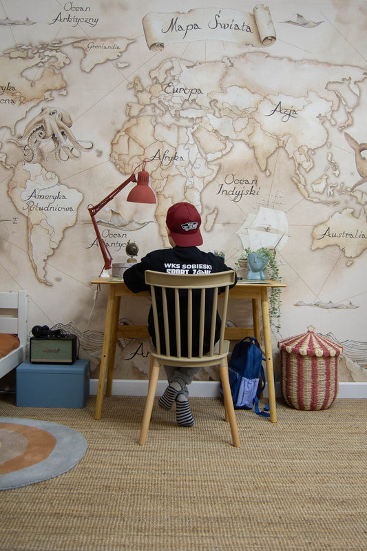 Ταπετσαρία παγκόσμιος χάρτης θάλασσα μπεζ